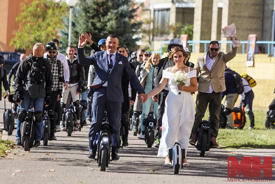 На моноколесах в отдел ЗАГС. Необычную свадьбу сыграли в Минске